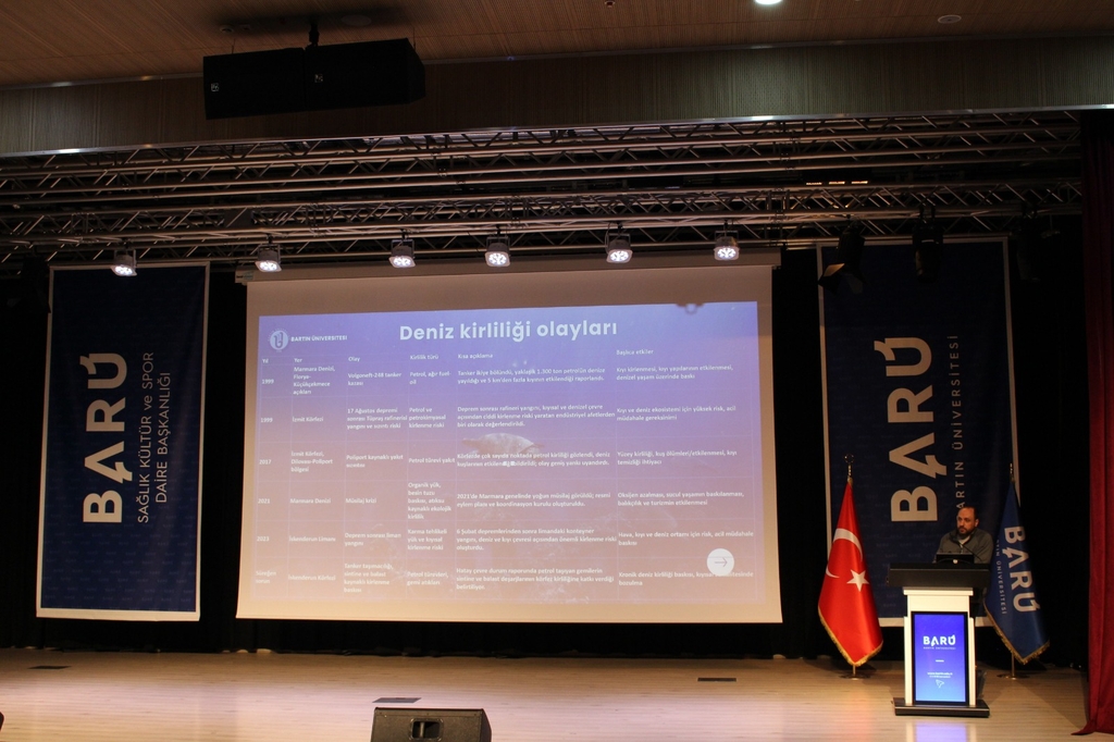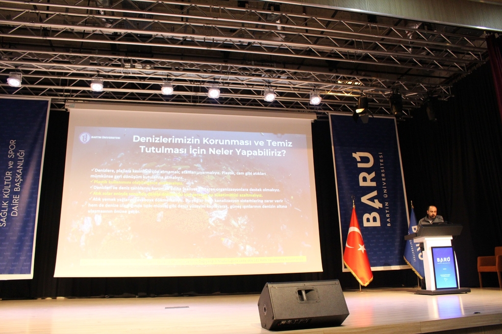 Deniz çöpleriyle etkin mücadele edilmesi ve doğal kaynakların kullanılmasında ekolojik dengenin korunmasına yönelik farkındalığın artırılması amacıyla Mühendislik, Mimarlık ve Tasarım Fakültesi öğretim üyesi Dr. Öğr. Üyesi Ercan BERBERLER tarafından 22 Nisan Çarşamba günü saat 14.00'te Eğitim Fakültesi/ İİBF Binası Konferans Salonu'nda "Deniz Çöpleriyle Etkin Mücadele Farkındalık Planı Eğitimi" verildi.
