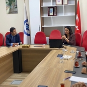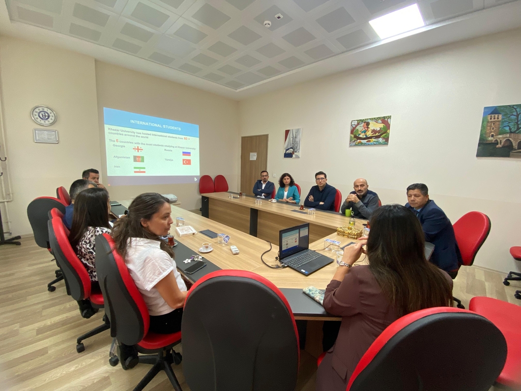 Azerbeycan’ın önde gelen yükseköğretim kurumlarından Khazar Üniversitesi Eğitim ve Sosyal Bilimler Fakültesi Dekanı Dr. Milana Abbasova, Erasmus KA171 Personel Hareketliliği kapsamında Eğitim Fakültesini ziyaret etti. Dr. Abbasova, ziyareti süresince İngillizce Öğretmenliği bölümü öğretim üyelerinin eğitimlerine katılarak uygulama örnekleri hakkında bilgi aldı. Bunun yanı sıra Eğitim Fakültesi Dekanı Prof. Dr. Çetin SEMERCİ ve bölüm başkanlarıyla iş birliklerine yönelik toplantılar gerçekleştirdi. Toplantılarda BARÜ Eğitim Fakültesi ile Khazar Üniversitesi Eğitim ve Sosyal Bilimler Fakültesi arasındaki iş birliğinin derinleştirilmesi ve geliştirilmesi hususunda görüş birliğine varıldı.